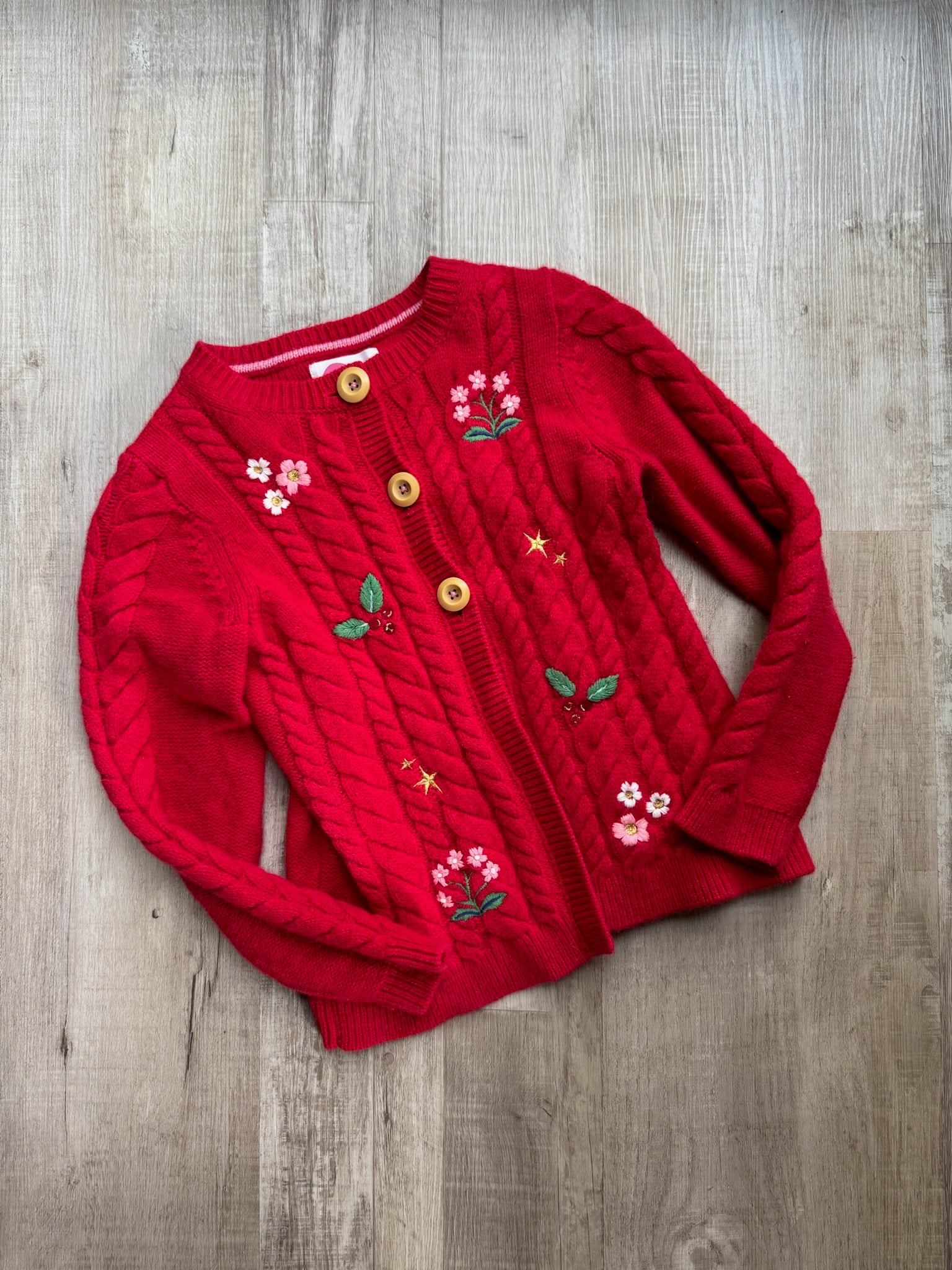 Mini Boden Red Floral Wool Sweater